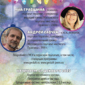 Ведущие программы: Елена Моисеева – практический психолог, гештальт-терапевт, супервизор, ведущий тренер МГИ. Психотерапевтическая практика 27 лет. Андрей Савчук – к.пс.н., психолог, гештальт-терапевт, супервизор, ассоциированный тренер МГИ. Подробнее>>