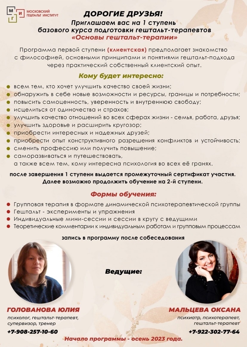 В этом году я выпускаю очередную группу второй ступени базового курса подготовки гештальт-терапевтов и в новой команде коллег планирую новый проект базового курса.