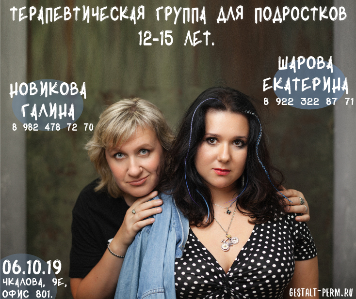 Мы, как ведущие этой группы, будем посредниками между родителями и детьми. Любой подросток нуждается в одобрении и поддержке со стороны старших, но данный возраст отличается критичностью и негативизмом по отношению к близким людям. А познавать себя и как устроены другие лучше в безопасной обстановке группы. Где кроме тебя есть и другие участники, – такие же подростки со своим миром, стразами и мечтами.