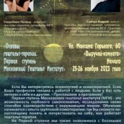 Программа “Московский Гештальт Институт” является результатом более чем тридцатилетнего коллективного опыта применения и осмысления гештальт-подхода и подготовки специалистов в области гештальт-терапии в России и за рубежом. Подробнее>>