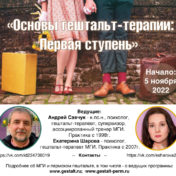 Осваивая эту профессию, мы очень сильно меняемся. Меняется восприятие, мышление, появляется новая идентичность: ” Я – гештальт терапевт”. Подробнее>>